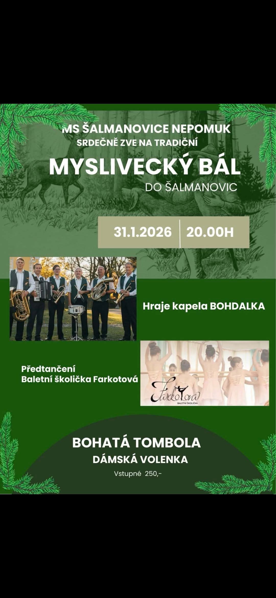 Dne 13.7.2024 od 14:00 hodin pořádá MS Šalmanovice Nepomuk Pytlacký flám na hřišti v Šalmanovicích. Program bude pestrý, zábavný, zajímavý a skvělý . Na hřišti budou tradičně rozmístěna stanoviště, která budou plná soutěží, her, poznávání, učení nových věcí a plno srandy. Díky podpoře Lesy ČR budou pro děti připravené parádní odměny. Také kamarádka Eliška Mašková věnovala spoustu skvělých cen a firma Bohemia Rings dodala úžasné magnetické stavebnice. Zmíněným patří velké poděkování. Jedno ze stanoviště vzaly dámy z ÚHUL, takže se můžete těšit na odbornou lesní pedagogiku. Do programu je také zařazena ukázka lovecké Kynologie, jízda na koni, sokolníci, myslivecké troubení v podání mladých trubaček. Pokud počasí dovolí bude další skvělé vyžití. Pojďte zažít přírodu a myslivost, klasicky hezky a na místním hřišti na pohodu a večer zůstaňte na zábavu s kapelou Cmaj7,kdy večer bude otevřen místní koktejl bar a za ním se budou míchat koktejly o 106.